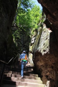 THE BASTEI – in short, worth experiencing one of thee most touristy places in East Germany. The geological features in this area are all around with the Elbe river on one side and leading through the nearby Czech border. We survived the climb to the top of the Bastei, nearly. For me, it went from difficult to stressful to a tortuous experience! Physically my body was not prepared and as little ol‘ ladies raced by me, I felt ‚being alive‘ was not enough anymore (LOL). (Note: little ol‘ ladies in Germany are quite fit and saunter by on bikes or with walking poles and sensible shoes well into their older years. It is common to see them and they come in all shapes and sizes, some appearing less fit than you would believe capable.)