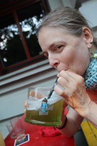 But our main sleeping difficulty lay with the surrounding sounds. Only 3 weeks away from the summer solstice, the sun rises early and set quite late in Germany. (Sunrise 5 am, sunset 9:45 pm.) Combine that with the adjacent church and you can have only, at most, 5 hours of quiet per night. „Zwitschern“ (bird song or bird singing) starts quite early, about the same time as the local train – 4 am. (Of course, there is also a local RR crossing and it’s strong, artificial alarm.) At 5, the church announces every hour and least one forgets, every 15 minutes, with a corresponding chime. By 11 pm, one either has gone mad („Verrückt!) or numb to dinging tones. Our 3 nights stay was not long enough to immune us to Castle Tannroda’s cacophony.
