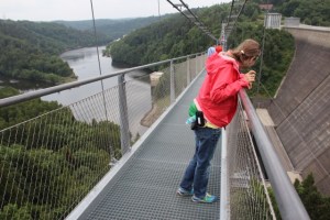 One day trip was to Nationalpark Hainich, and it’s Treetops Park. Within the elevated board walk are sections of rope paths. While designed for children, we managed to maneuver ungracefully through the various potentially strangling obstacles. It made reaching the apex all the more rewarding. After a loud yell in Höhni’s direction, the heat of the day sent us back down to the cool forest floor. Elke found great humor in my ‚lower pocket‘ info packet.
