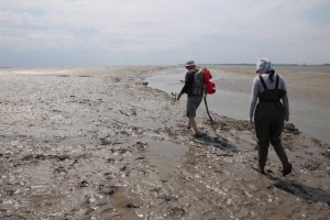 The sunset after 9:30 made for great photo shots in the light. The mud flats are very special in that area. It is safe to go a little ways out. Otherwise, a knowledgeable guide is recommended. And of course, Elke has such a friend. And his fantastic dogs.